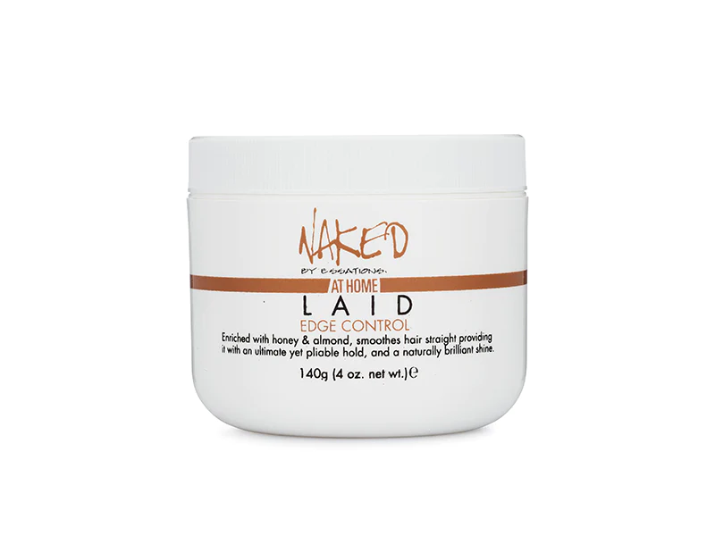 Naked Laid Edge Control is a grease free gel that is used to smooth and hold the stray edges of the hair straight, while leaving it soft, pliable, and with a naturally brilliant shine.